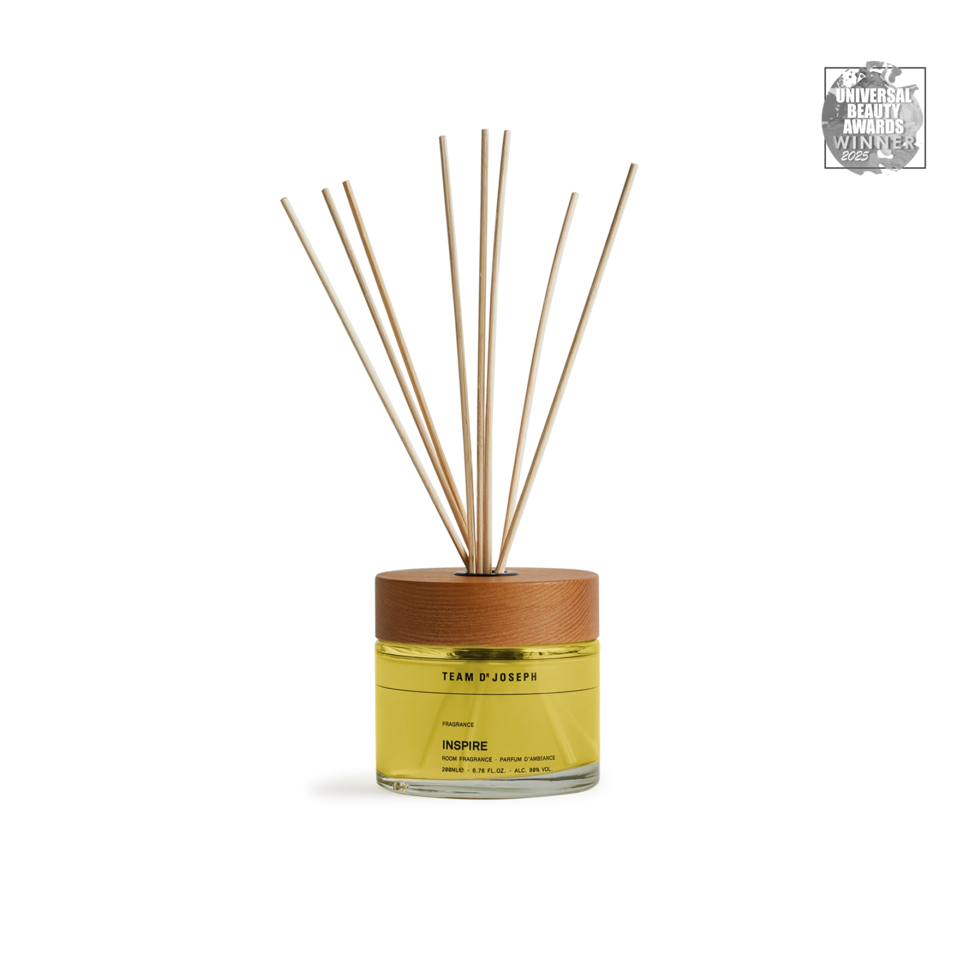 INSPIRE. Inspiration für Körper und Geist. Erlesene natürliche Essenzen aus Grapefruit, Litsea und japanischer Ackerminze entspannen, erfrischen und inspirieren – sinnlich berührt durch Jasmin, Patchouli und Rosengeranie in geerdeter Harmonie mit Zirbelkiefer. Ein Duft für Ihr Zuhause.